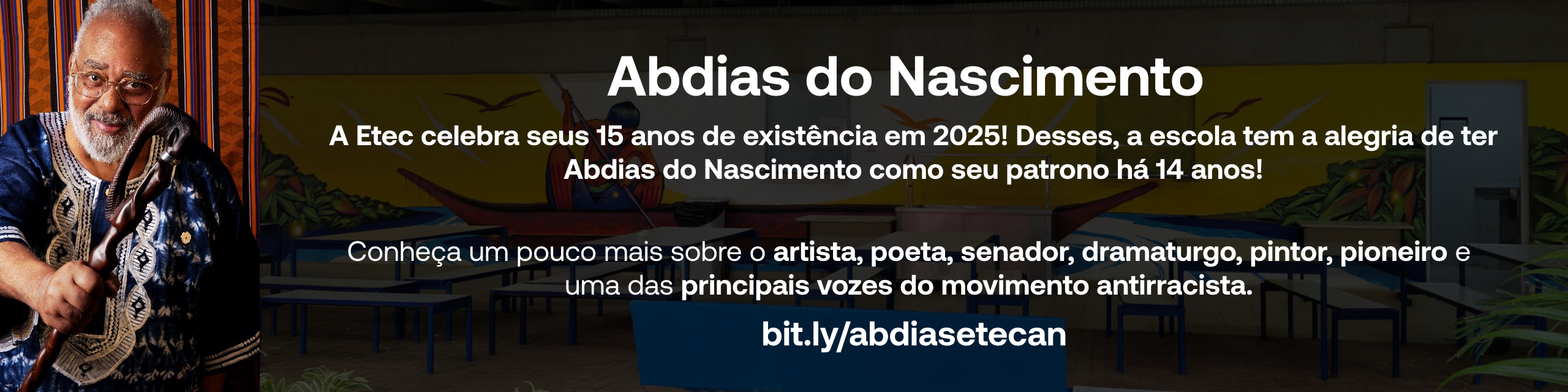 A Etec Abdias do Nascimento presta homenagem ao patrono que dá nome à escola, celebrando sua trajetória como um dos maiores ativistas do Brasil.